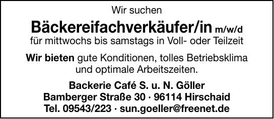 Bewerben Sie sich jetzt bei Backerie Café S. u. N. Göller