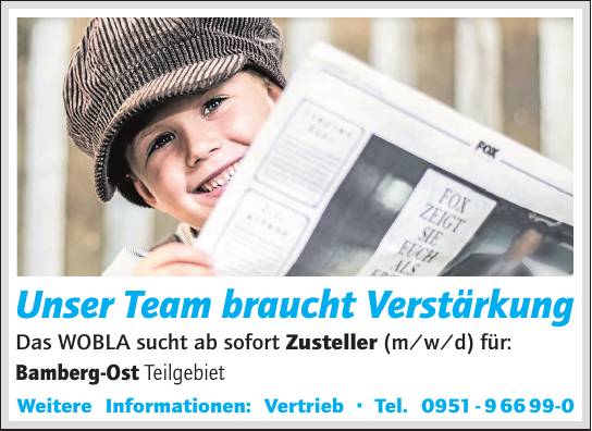 Geschäftskunden: Unser Team der Mediaberaterinnen Karin Rosenberger (0951/9669924) und Silke Güthlein (0951/9669923) berät Sie gerne von Montag bis Freitag zwischen 8.00 Uhr und 17.00 Uhr individuell und kompetent zu Ihren Anzeigen und Beilagen im WOBLA.